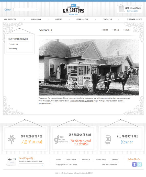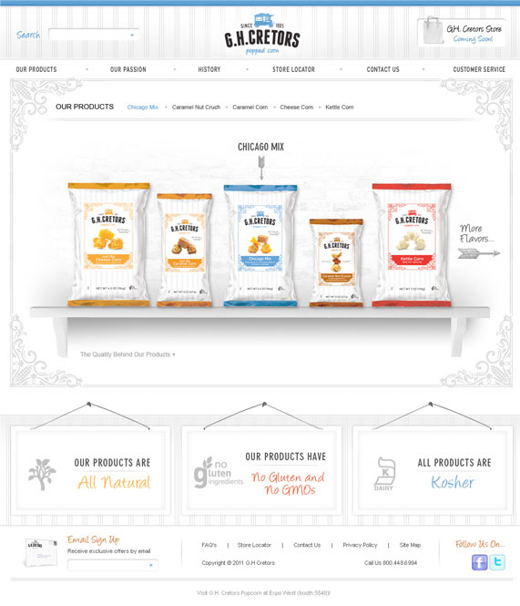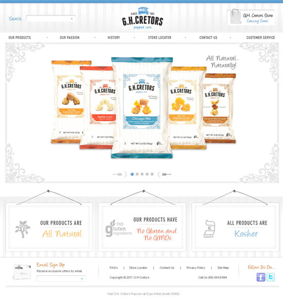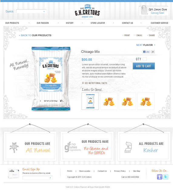 Before G.H. Cretors became a household name, they came to Americaneagle.com to build an online experience. Utilizing their heavily stylized look, I designed an interactive e-commerce experience for their customers.